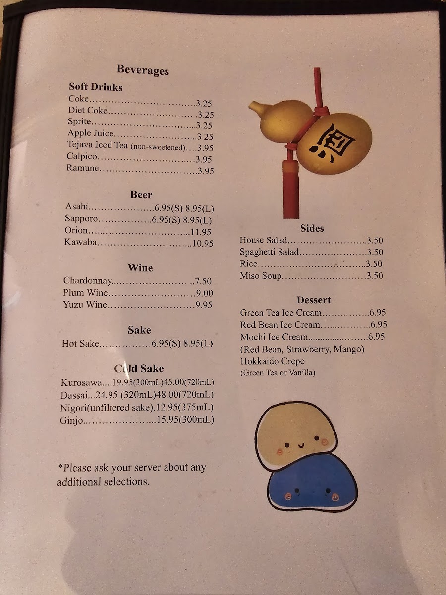 Yuki Japanese Restaurant Menu
